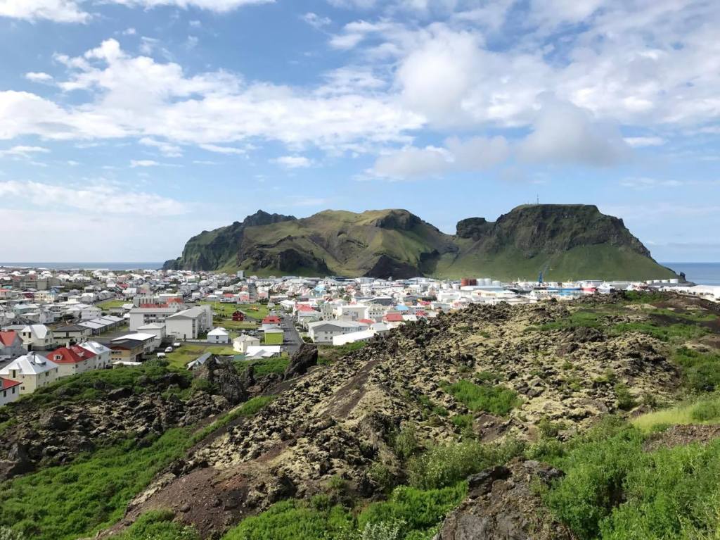 Last but certainly not least the Westman Islands. Also known as Heimaey, the Westman Islands are definitely a hidden gem of Iceland. We traveled to the main island called Heimaey by ferry from the mainland of Iceland. We spent the day exploring this little island. We grabbed breakfast and coffee at a cute little cafe, hiked an extinct volcano, walked around the small town, and visited little shops. This quaint town is influenced by the history of the Eldfell volcano eruption in the 1970s. It erupted for months. The hardened lava from the eruption created a barrier on the one side of town. On this island, you can see puffins and explore stunning nature. My day here was one of my most relaxing and coveted days of the trip.