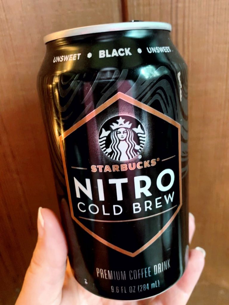 If you are interested in the nutrition information, Starbucks nitro cold brew has 0 calories and has 180 mg of caffeine per serving. The can says the 180 mg of caffeine is the equivalent of 2 cups of coffee.