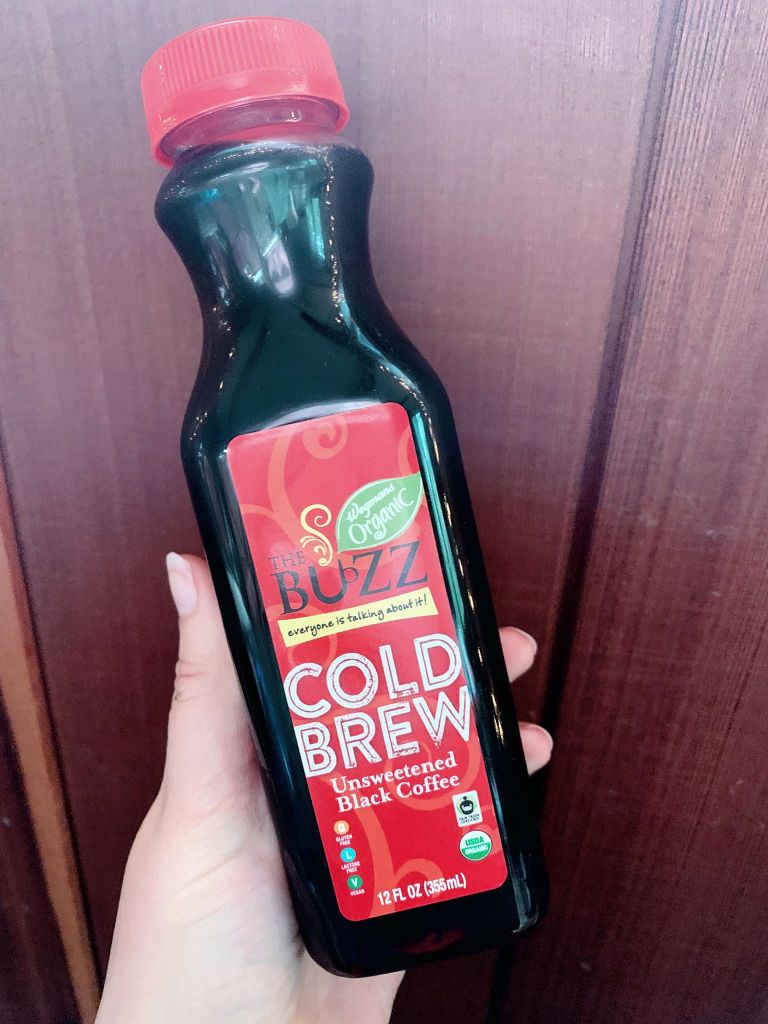 If you are interested in the nutrition information, The Buzz Wegmans Organic cold brew has 10 calories and does not have the amount of caffeine per serving.